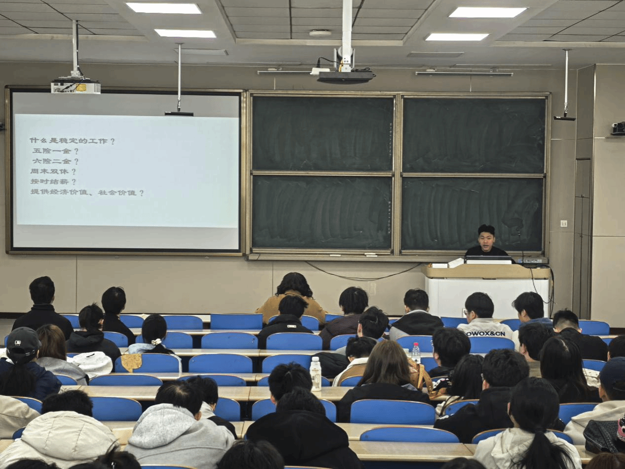 罗宇翔围绕考公相关事宜展开专项宣讲,结合当前考公新形势、新政策,为学生提供全流程、全方位的指导。宣讲中,他重点解读了考公选岗的核心逻辑,强调“选对岗比努力更重要”,提醒学生优先选择专业对口、招录人数适中、契合自身意愿的岗位,避开三不限、异地乡镇等竞争激烈或发展受限的岗位,充分利用应届生身份这一黄金优势,精准匹配岗位需求,降低上岸难度。同时,他详细讲解了国考、省考的报考流程、时间节点及注意事项,指导学生严格对照岗位专业目录报考,不确定时及时与招录单位沟通确认;在备考指导上,他结合考公备考规律,建议学生制定系统的备考计划,分模块突破行测、申论重点难点,注重时政积累和答题技巧训练,拒绝盲目备考、无效内耗,兼顾学习效率与心态调整,为考公之路筑牢基础。